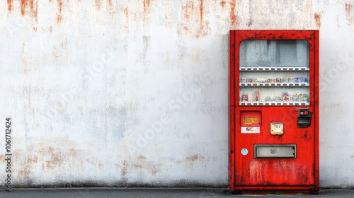 Vintage Red Vending Machine Against Weathered Wall
