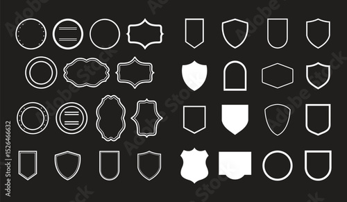 Vintage silhouette shield vector icon set on white background