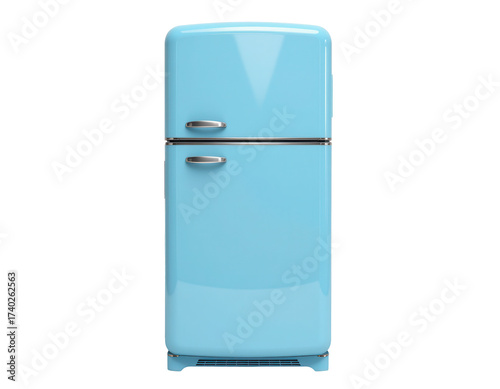 Vintage Style Blue Refrigerator with Glossy Finish and Chrome Handles