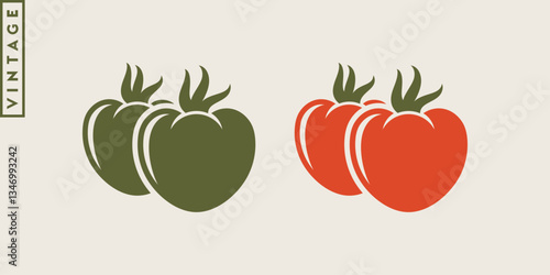 Vintage style tomatoes. Green and red vegetables