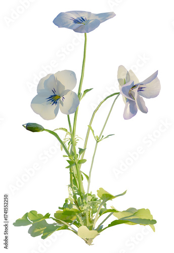 Viola tree cutout, front view, transparent background, isolate, Delicate white pansy blossoms with delicate purple veins bloom gracefully