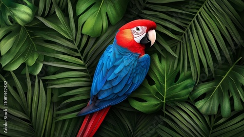 Vivid Scarlet Macaw Parrot Tropical Leaves Jungle Bird Wildlife Nature
