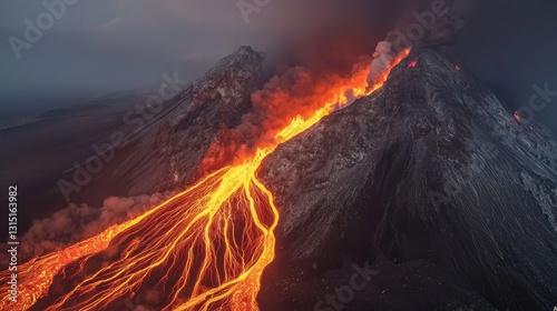 Volcanic Eruption Flowing Lava Mountain