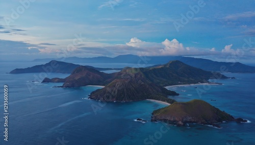 Volcanic islands, aerial view, ocean, sunset