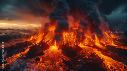 Volcano lava eruption