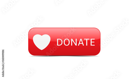 Voluntary and donation concept. Donate button icon. Red button with white heart symbol isolated