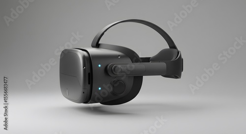 VR Headset: A sleek and modern VR headset, poised against a neutral backdrop, ready to transport users to immersive digital worlds and virtual experiences.