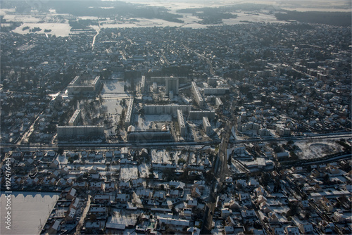 Vue aérienne de la ville de vernouillet à l'ouest de Paris sous la neige