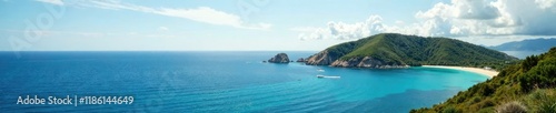 Vue sur la mer et les ?les de l'?le de Beaut?, nature, ?clairage