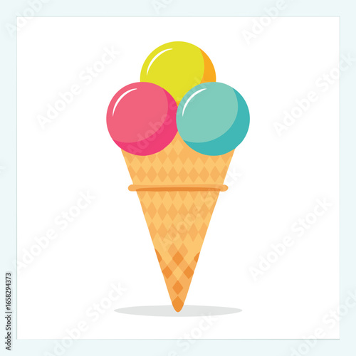 Waffle Cone with Three Glossy Ice Cream Scoops - AI Generated