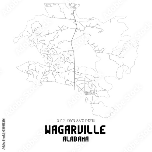 Wagarville Alabama. US street map with black and white lines.