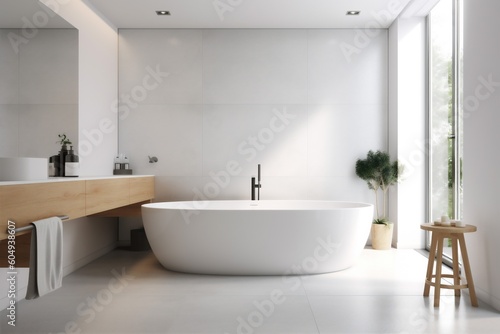 wall interior wood architecture house bathroom bathtub modern home luxury white. Generative AI.