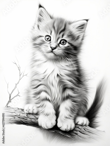 Wallpaper for phone with a pencil sketch artwork kitten animal drawing.