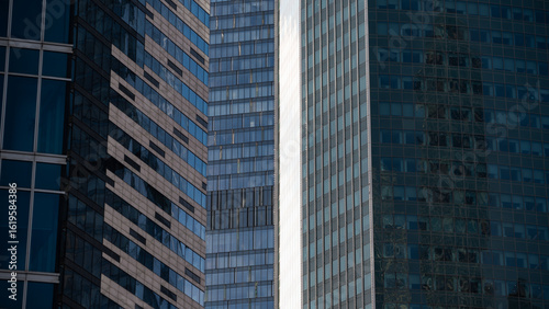 walls and empty windows of a modern building on a big city street without people