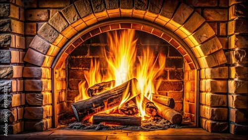 Warm and cozy wood fire burning in fireplace , cozy, warmth, flames, hearth, home, winter, ambiance, traditional