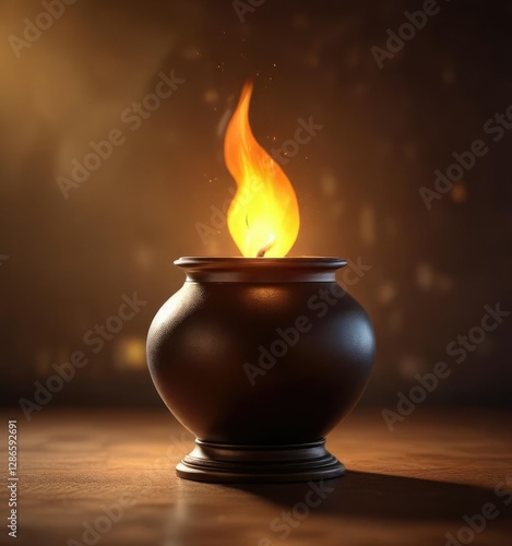 Warm glow of a lit lamp with an open lid and a dancing flame, gentle flame, warm glow