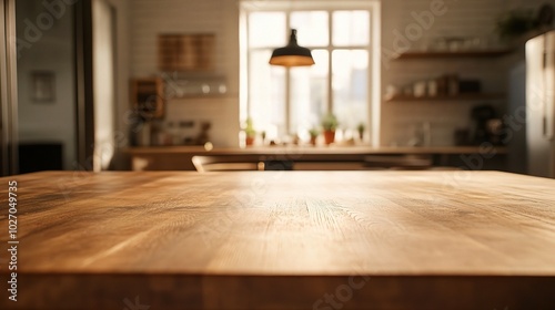 Warm Wooden Table in Modern Kitchen Setting