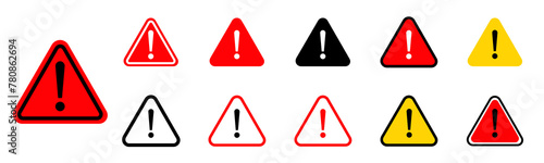 Warning and danger sign set attention triangle sign with exclamation mark