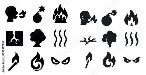 Warning signs solid icons set – safety, alert, caution symbols collection