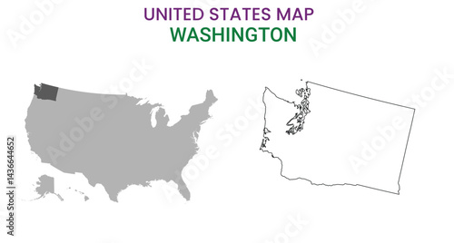 Washington map of USA state. Washington map vector illustration. Washington vector map on white background.