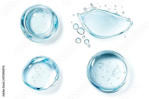 Water serum drop texture. Liquid gel with bubbles circle set . Clear toner, cosmetic product swatch isolated on white background , ai