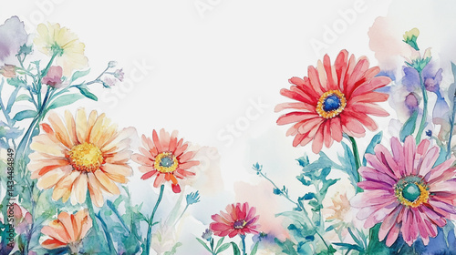 watercolor botanical Gerbera flowers texture template background.Elegant wedding invitation card background . Minimal hand painted Design for wedding or Valentine's Day