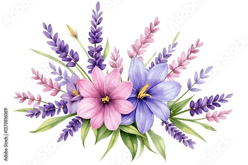 watercolor bouquet of violet flowers