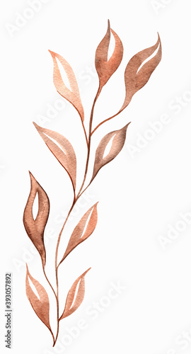Watercolor branch with golden brown leaves isolated on white background