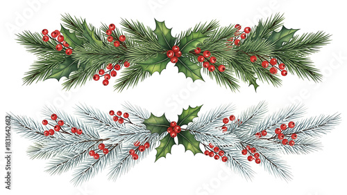 Watercolor Christmas Garland: Festive Holiday Decoration with Holly and Berries.