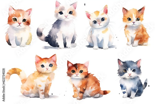 Watercolor cute cat on white background Generative AI