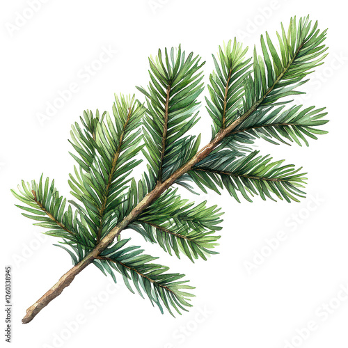 watercolor drawing of a evergreen fir tree branch isolated on transparent background