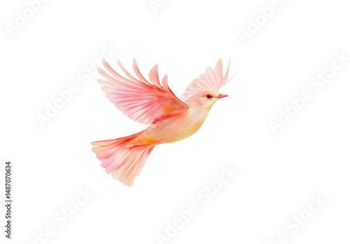 Watercolor flying bird, white background