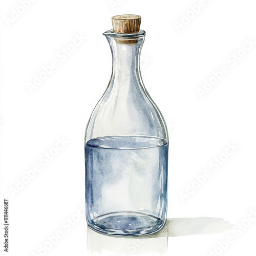 Watercolor illustration of carafe bottle with water inside
