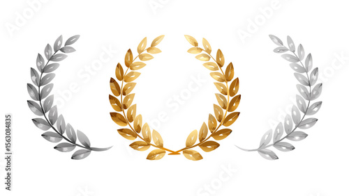 Watercolor laurel wreaths gold silver vector illustration design element art