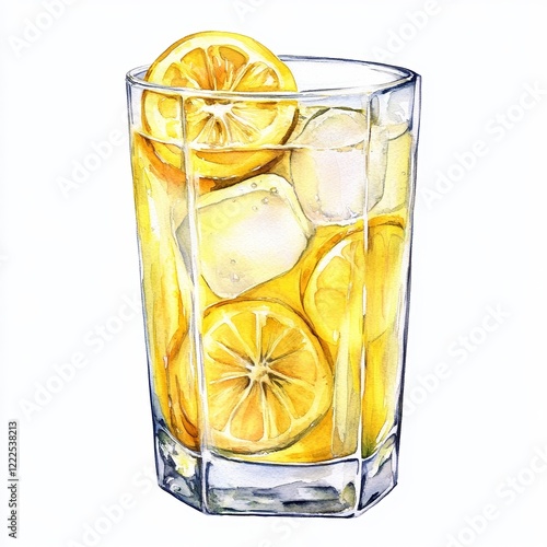Watercolor Lemonade Glass on white background. Perfect idea for restaurants, cafes, cocktail guides, and recipe books, holidays, parties, and beverage branding projects