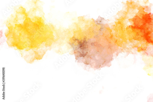 Watercolor painted background with blots and splatters. Brush stroked painting. 2D Illustration.