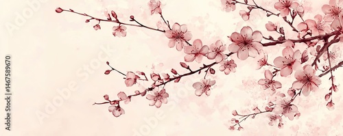 Watercolor painting of pink cherry blossoms on a branch against a light background.