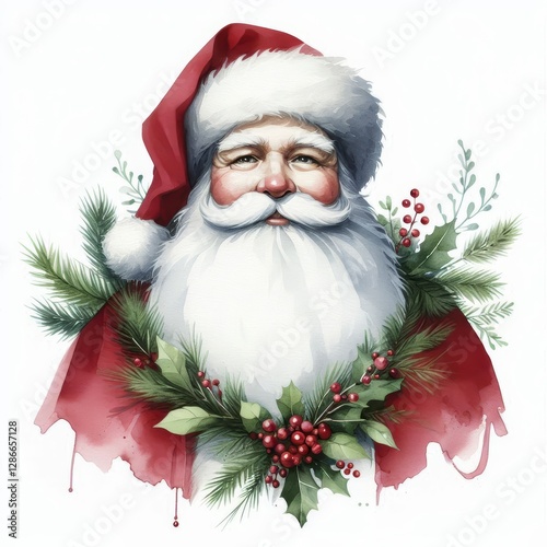Watercolor santa claus with festive garland a christmas holiday spirit
