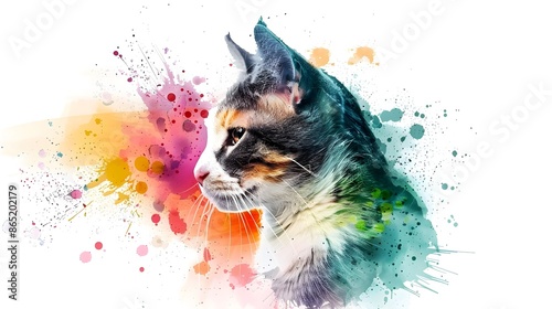 Watercolor Splashed Cat Sticker Design for Apparel and Fashion Branding