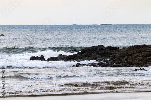 Waves splashing against rocks