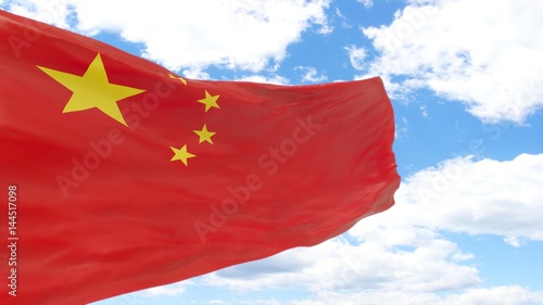 Waving flag of China on the blue cloudy sky.