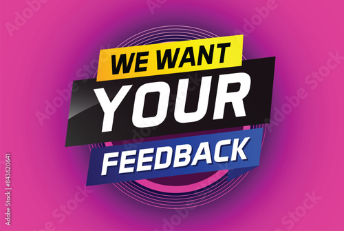 We want your feedback speech word concept vector illustration 3d style for use landing page, template, ui, web, mobile app, poster, banner, flyer, background, Loudspeaker, label We