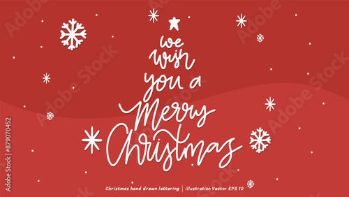 We wish you a merry Christmas brush calligraphy, Handwritten ink lettering, handwriting on red background, Flat Modern design ,Vector illustration EPS 10