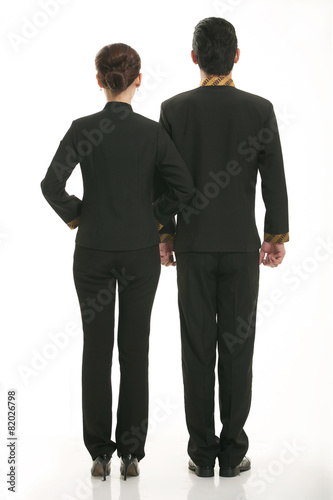 Wear clothing occupation Chinese waiters in white background