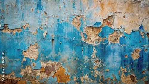 Weathered blue concrete wall with distressed, rugged texture, featuring aged cracks, scratches, and faded paint, evoking a sense of urban decay and grungy atmosphere.