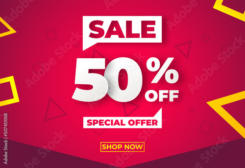 Web Vector illustration Sale red banner template design, Big sale special up to 50% off. Super Sale, end of season special offer banner.