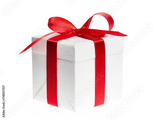 Weißes Paket mit Roter schleife isoliert auf weißen Hintergrund, Freisteller