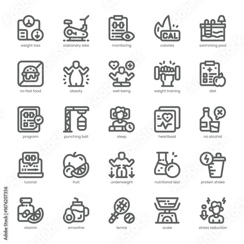 Weight Management Icon pack for your website, mobile, presentation, and logo design. Weight Management Icon outline design. Vector graphics illustration and editable stroke.