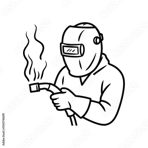 Welder at work line art illustration