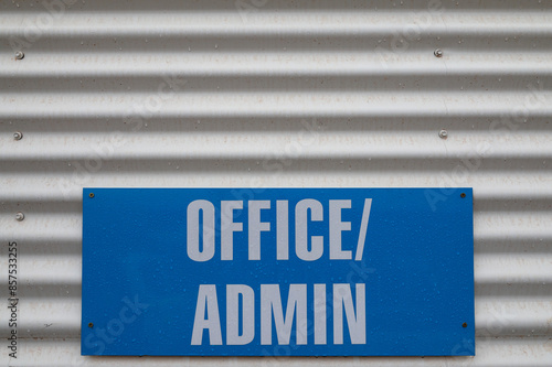 Wet office, administration room sign on exterior of modular, transportable, temporary building used in the mining and construction industries. Copy space